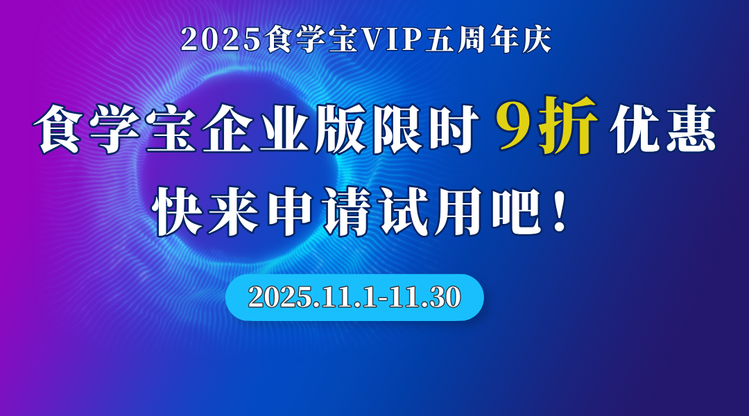 2025食学宝VIP五周年庆之际,食学宝企业版也给大家送福利啦!开通企业版享受限时9折优惠!